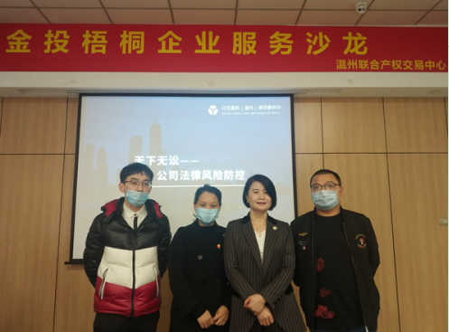 活動(dòng)特邀溫州市十佳律師、溫州市政府行政法規(guī)合法性審查專家、盈科(溫州)管委會(huì)主任周春萍律師在溫州聯(lián)合產(chǎn)權(quán)交易中心進(jìn)行現(xiàn)場(chǎng)直播,與溫州地區(qū)區(qū)域資本市場(chǎng)培育企業(yè)進(jìn)行公司法律風(fēng)險(xiǎn)防范知識(shí)分享。周律師通過(guò)實(shí)際案例與法律條文相結(jié)合的講解方式,讓企業(yè)對(duì)經(jīng)營(yíng)過(guò)程中可能面臨的法律風(fēng)險(xiǎn)有了較深刻的認(rèn)識(shí),并為企業(yè)提供了行之有效的避險(xiǎn)建議。