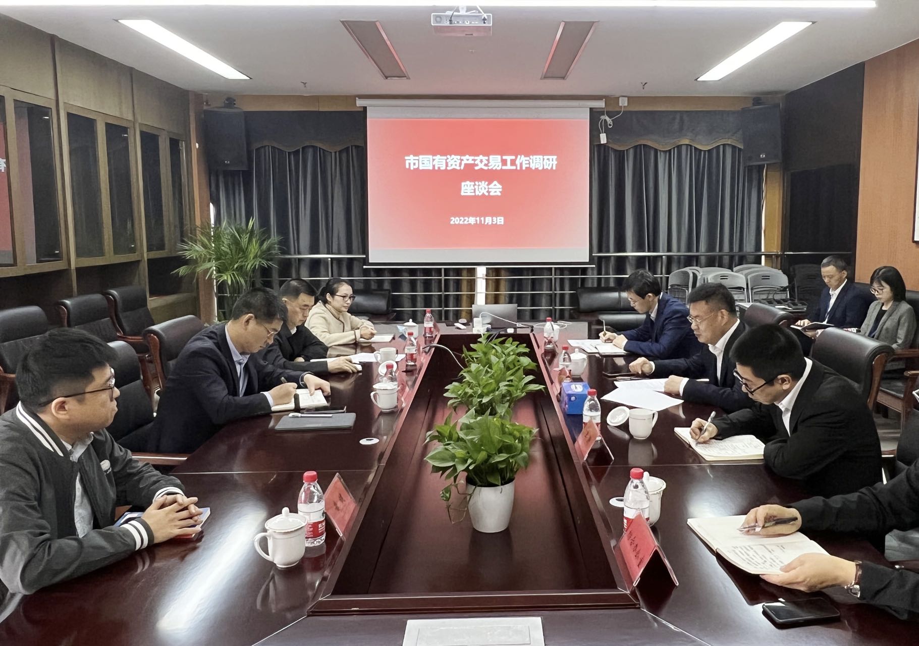 州市國有資本投資運營有限公司調(diào)研國有資產(chǎn)交易工作。朱葵、包光許一行參觀了溫州聯(lián)合產(chǎn)權(quán)交易中心辦公區(qū),了解其發(fā)展歷程及業(yè)務(wù)特色;召開調(diào)研座談會,詳細(xì)了解國有資產(chǎn)交易業(yè)務(wù)情況,并就如何做大做強我市國有產(chǎn)權(quán)交易體系進(jìn)行深入探討。公司黨委書記、董事長徐武敦作公司國有資產(chǎn)交易業(yè)務(wù)情況匯報。公司黨委委員、副總經(jīng)理李耕,溫州聯(lián)合產(chǎn)權(quán)交易中心相關(guān)負(fù)責(zé)人等參與調(diào)研座談。